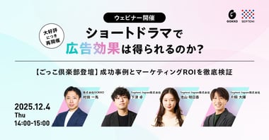 「テレビCMの15分の1のコストで認知率獲得に繋がった」というTikTokショートドラマの強みについて、Septeni Japan株式会社 クリエイティブ本部 ブランドコンテンツ開発室 責任者 江村雄一氏、株式会社GOKKO 代表取締役 田中聡氏にお話を伺った。
